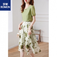 罗蒙2023年夏季新款优雅时尚舒适减龄女士气质百搭修身显瘦两件套装女 绿色 XL