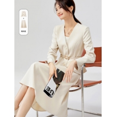 尚都比拉春季通勤OL风V领西装A字半裙显瘦两件套套装女 杏色 M
