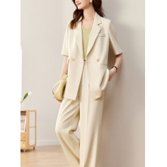 尚都比拉减龄时尚职业套装女西装直筒休闲长裤两件套女装 杏色 S