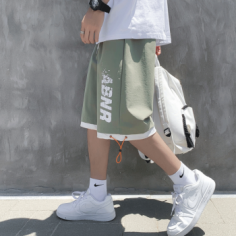 百鹊亭(BAIQUETING)短裤男2023夏季薄款宽松直筒外穿休闲短裤潮牌ins港风运动五分裤 浅绿色 XL