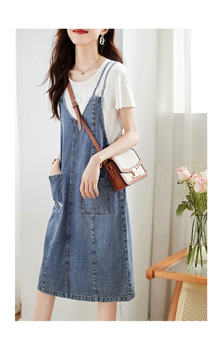 ORZUV品牌牛仔裙套装女2023年夏季新款设计风背带裙简约休闲裙子女 上白下蓝 M
